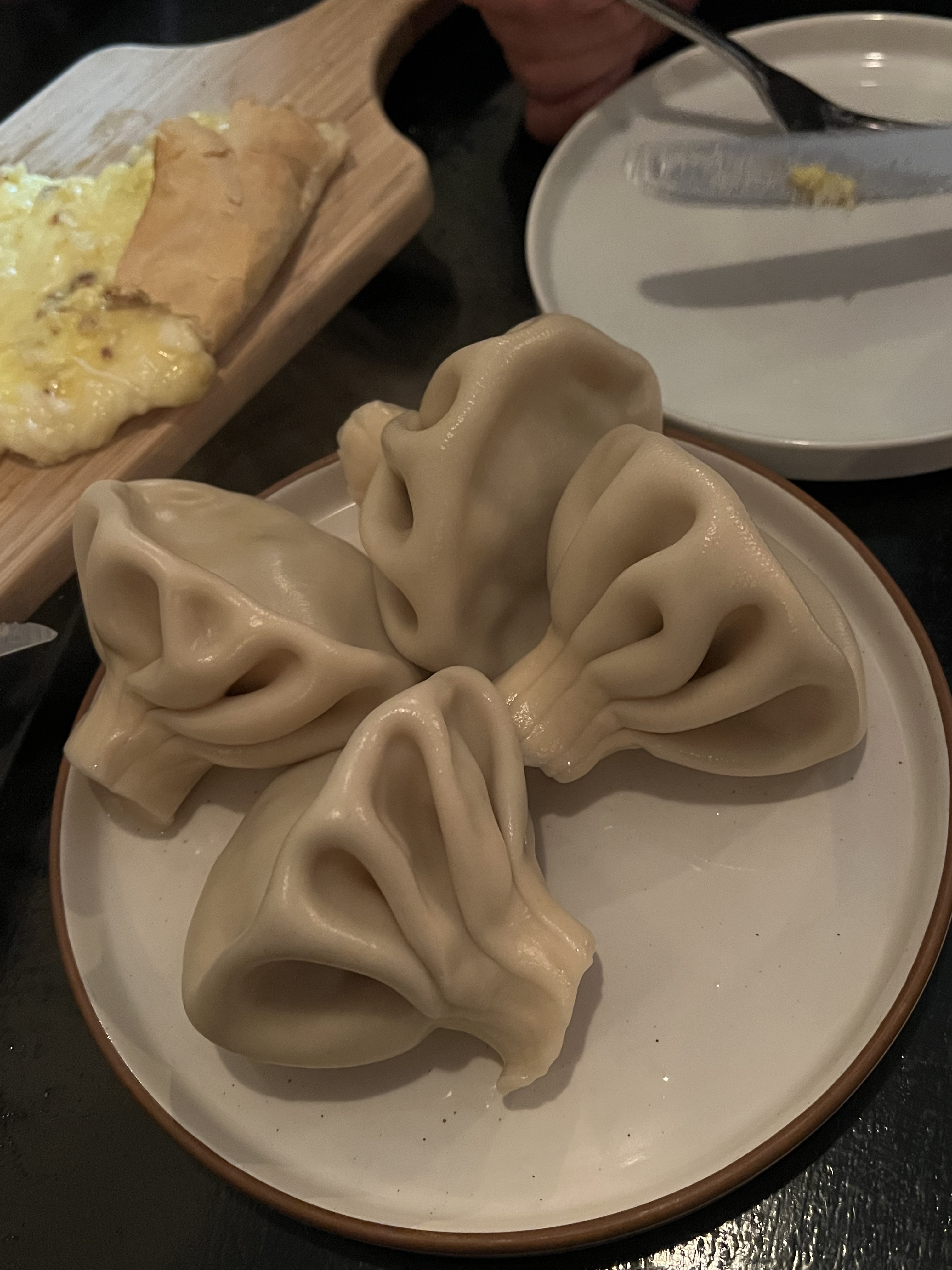 "Traditional meat khinkali was like soup dumplings on steroids. Could eat four as a main. Imeruli was like a fluffy quesadilla, a bit much alone. Chicken Tabaka with shkmeruli was amazing, I would drink that sauce like soup" - Kati